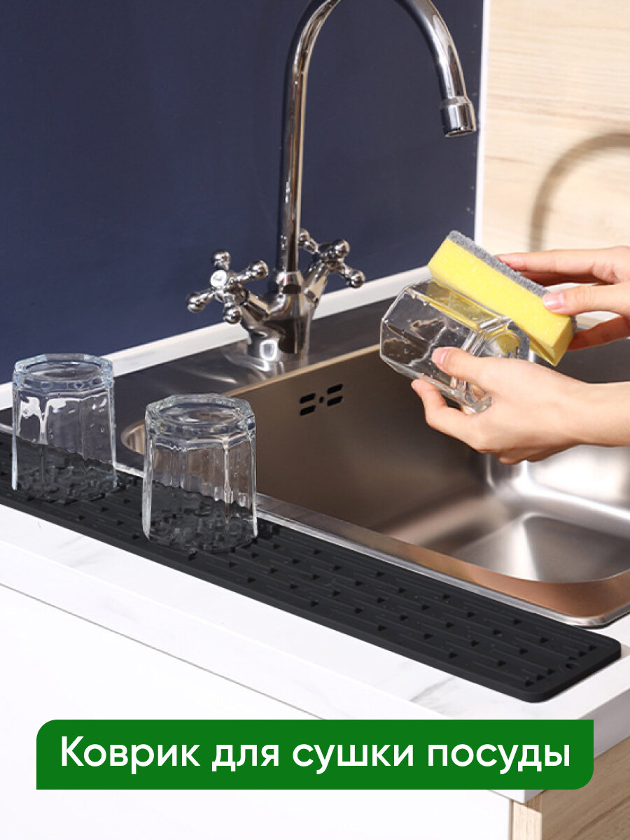 Ниже Вы можете прочитать отзывы на Коврик силиконовый от брызг для раковины, для сушки посуды, 55х8,8х0,5 см, черный, ознакомится с подробными характеристиками, посмотреть интересные обзоры и фотографии на Коврик силиконовый от брызг для раковины, для сушки посуды, 55х8,8х0,5 см, черный.