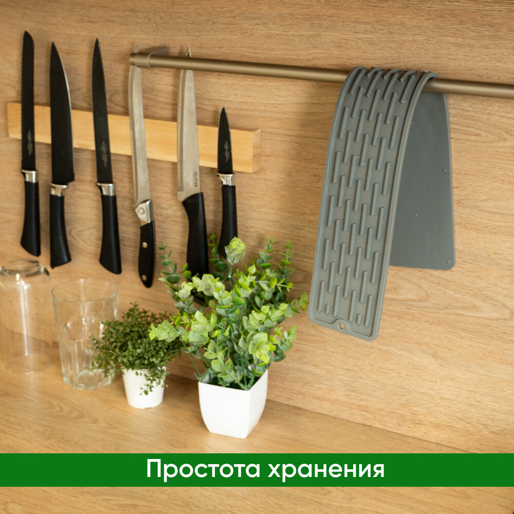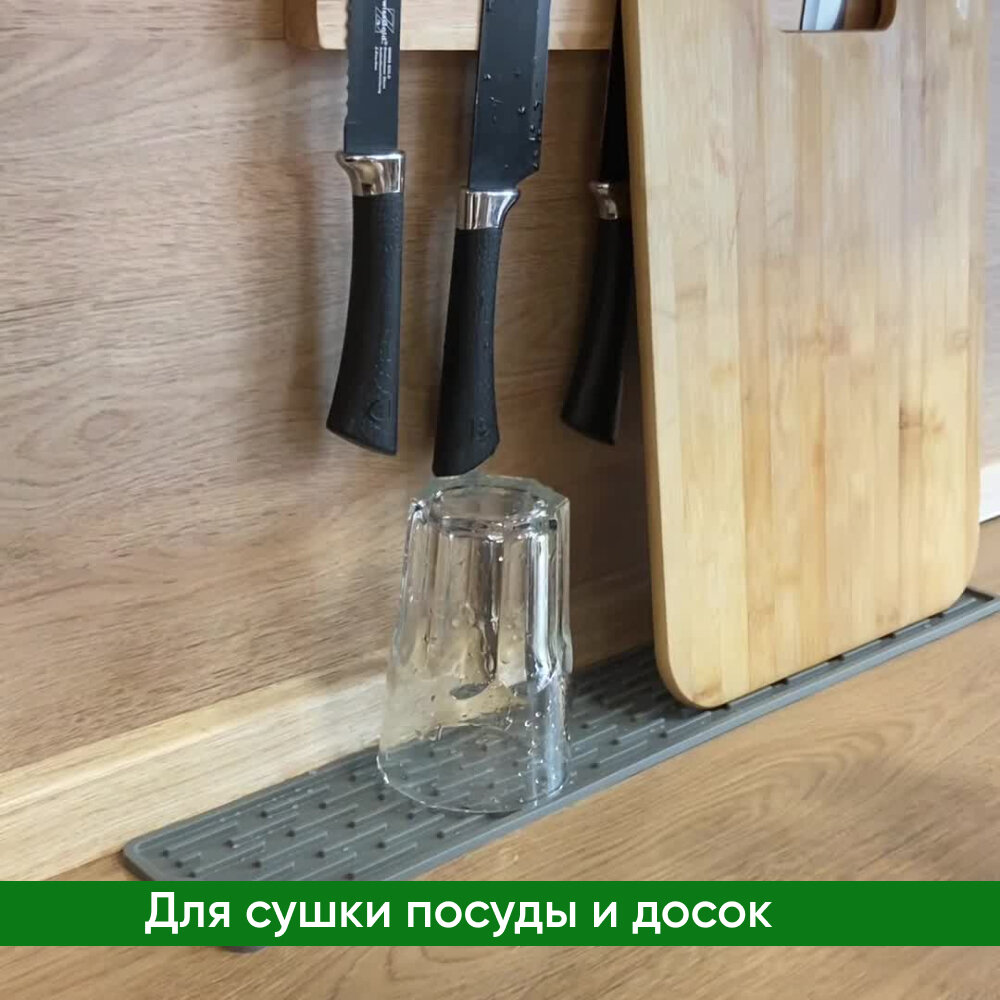 СохранитьКоврик для раковины на кухне силиконовый, от брызг на столешницу, для сушки посуды, 55х8,8х0,5 см, серый интересное: