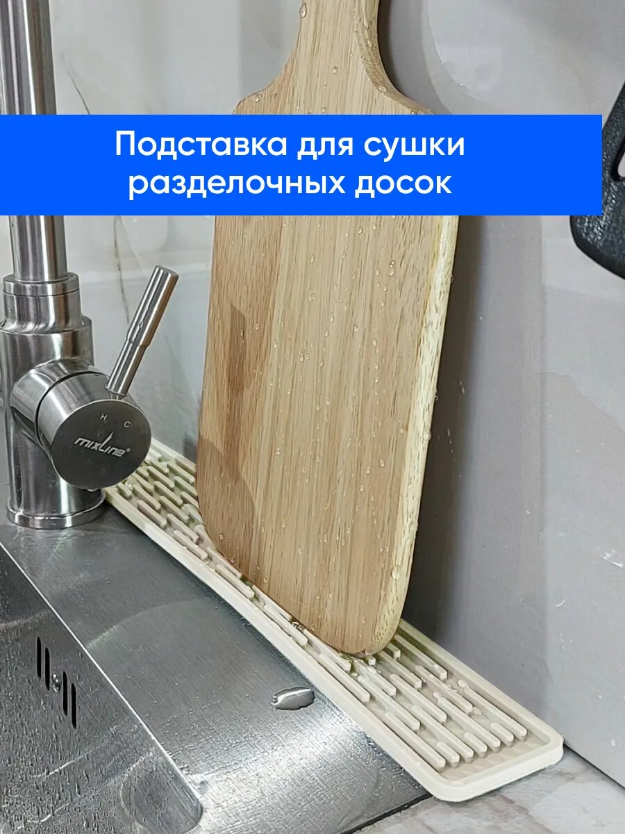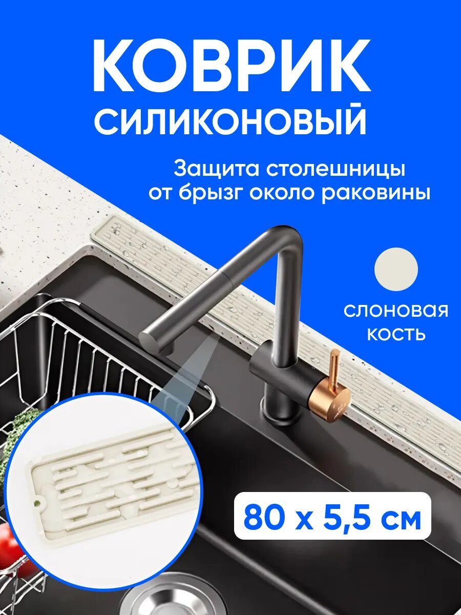 Купить Коврик для раковины силиконовый, для сушки разделочных досок, от брызг 80х5,5х0,5 см, слоновая кость