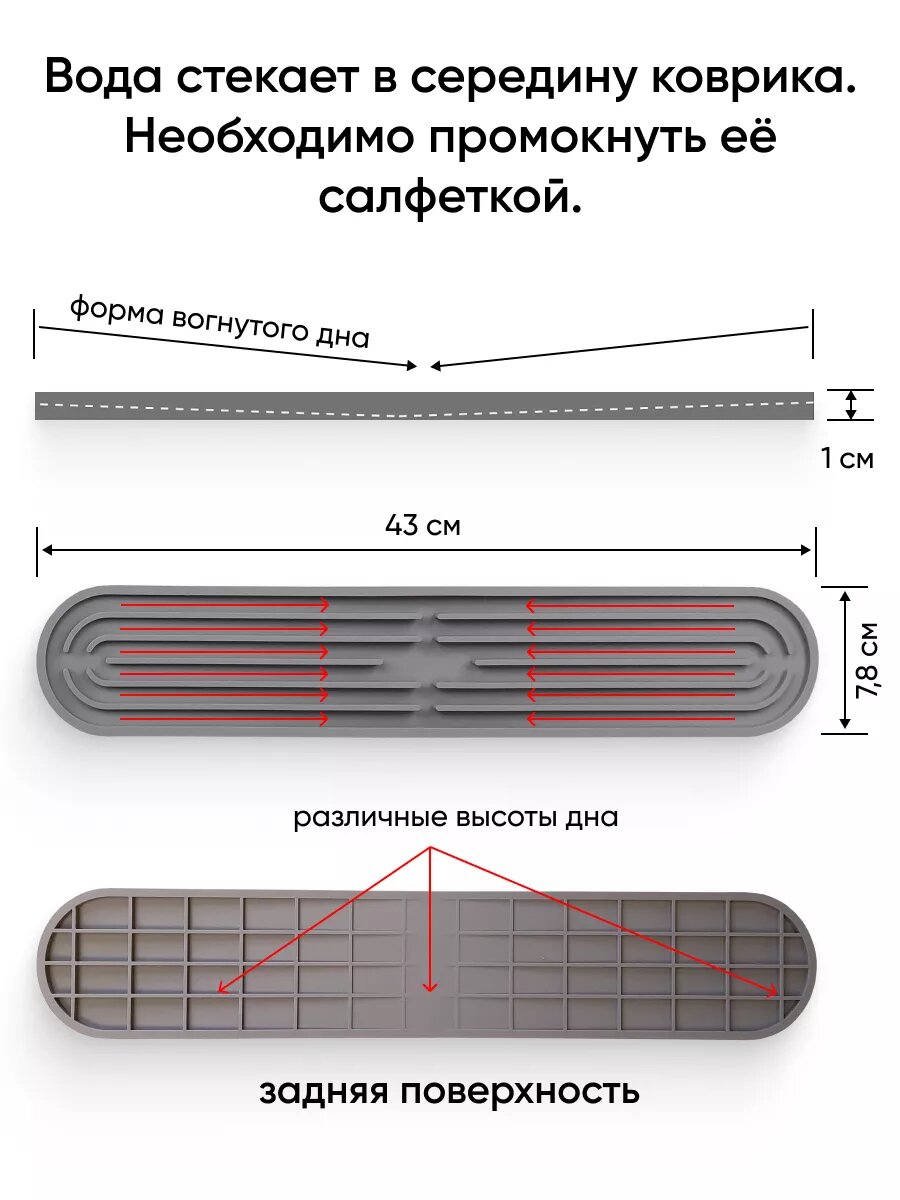 СохранитьКоврик для сушки посуды и разделочных досок, силиконовый, 43x7,8x1 см, серый интересное: