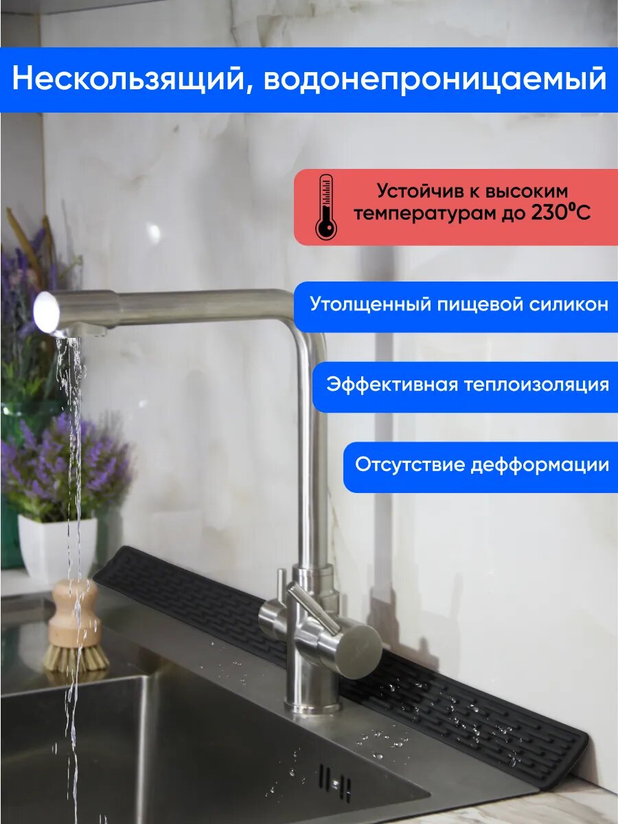СохранитьКоврик для раковины на кухню, силиконовый, от брызг 80х5,5х0,5 черный интересное: