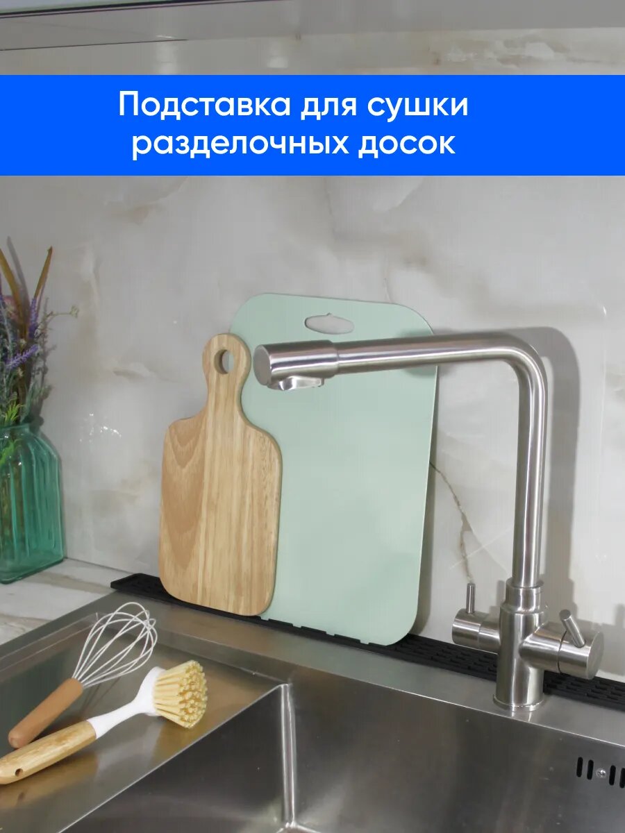 Коврик для сушки посуды силиконовый, под разделочные доски 35х8,8х0,5 см, черный