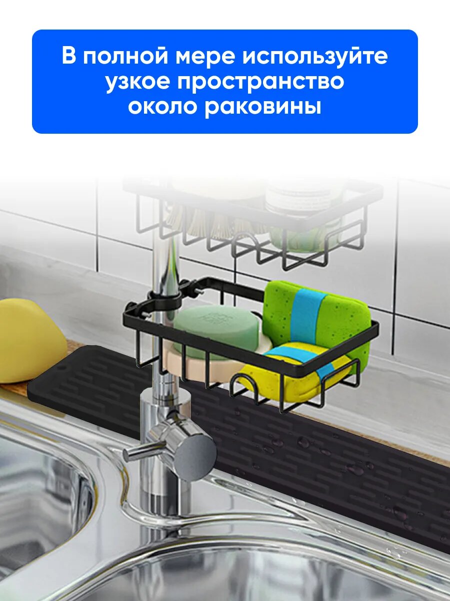 Купить Коврик для раковины на кухню, силиконовый, от брызг 80х5,5х0,5 черный