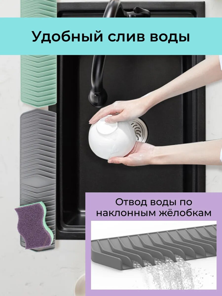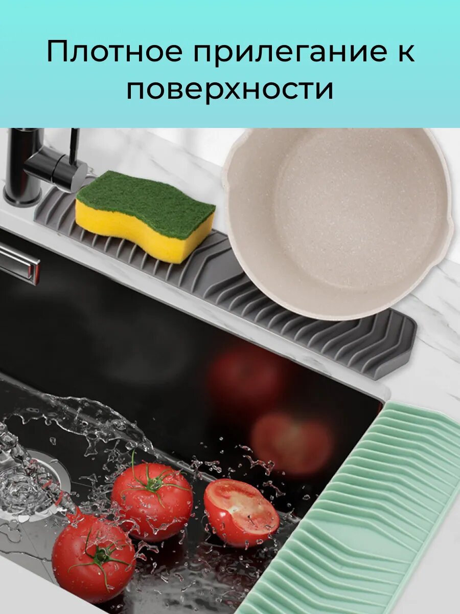 Коврик для раковины на кухне силиконовый, от брызг на столешницу, для сушки посуды, 55х8,8х0,5 см, серый