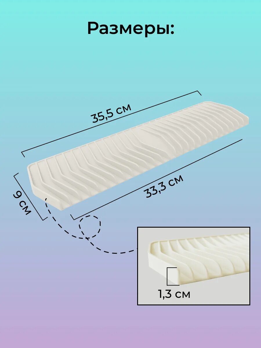 Коврик для раковины на кухне силиконовый, от брызг на столешницу, для сушки посуды, 55х8,8х0,5 см, белый