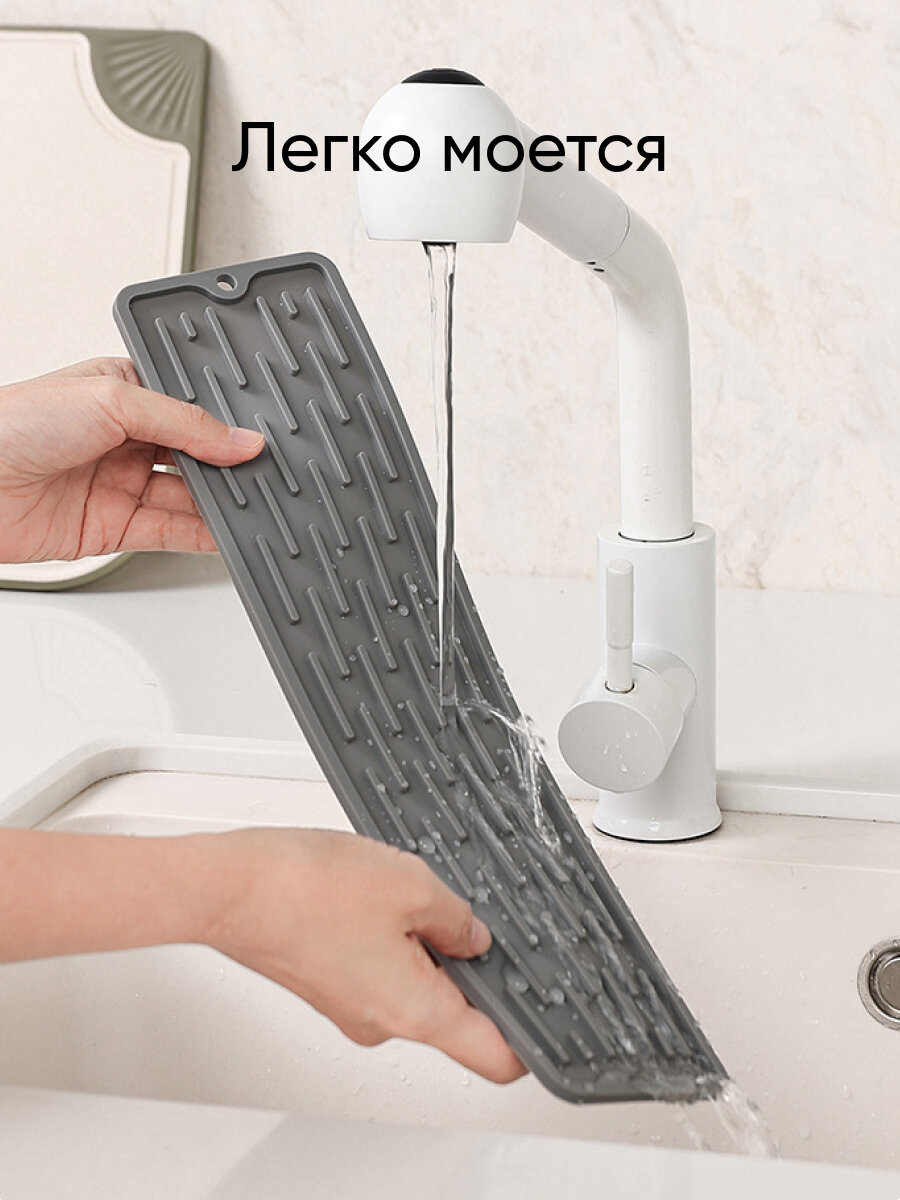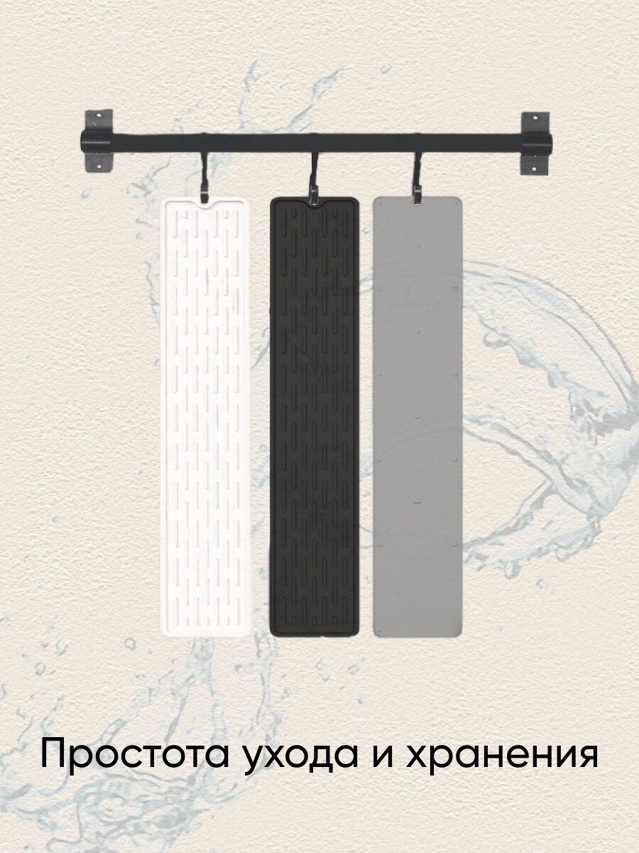 Коврик для раковины на кухне силиконовый, от брызг на столешницу, для сушки посуды, 55х8,8х0,5 см, серый
