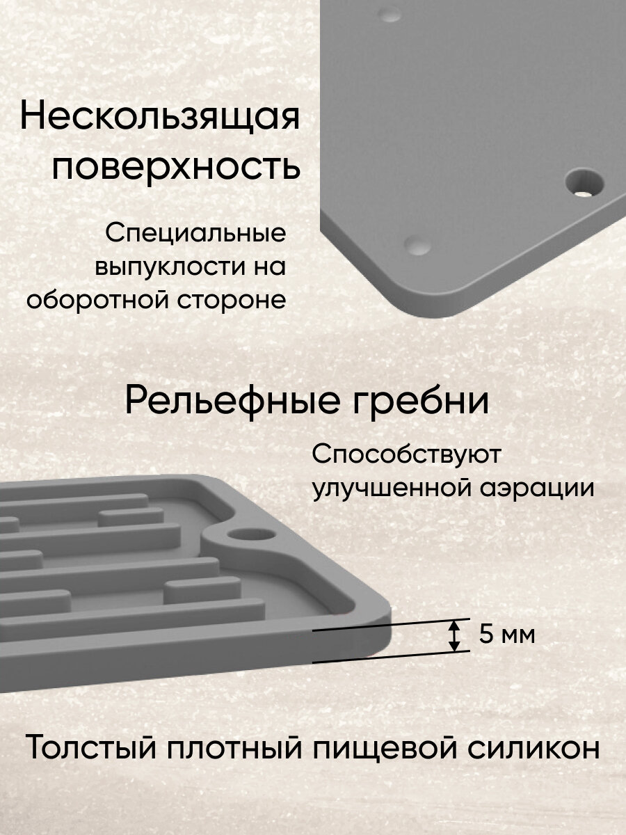 Купить Коврик для сушки посуды силиконовый, под разделочные доски 35х8,8х0,5 см, серый