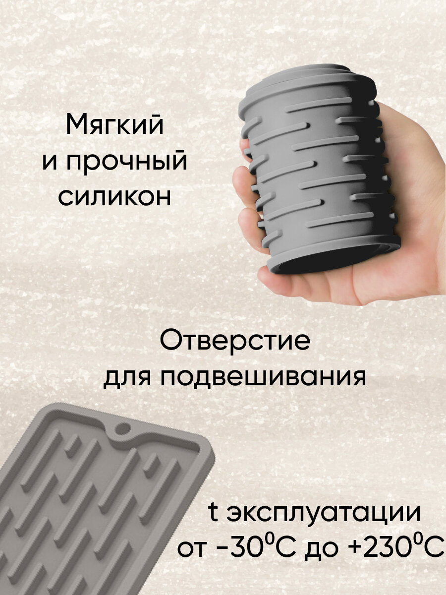 Коврик для сушки посуды и разделочных досок, силиконовый, 43x7,8x1 см, серый