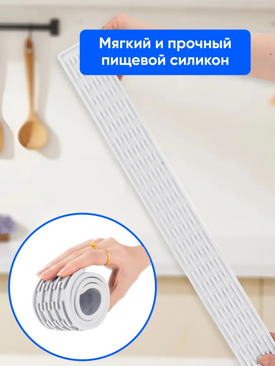 Коврик для раковины силиконовый от брызг, для разделочных досок, для сушки посуды, 70х10х0,5 см белый
