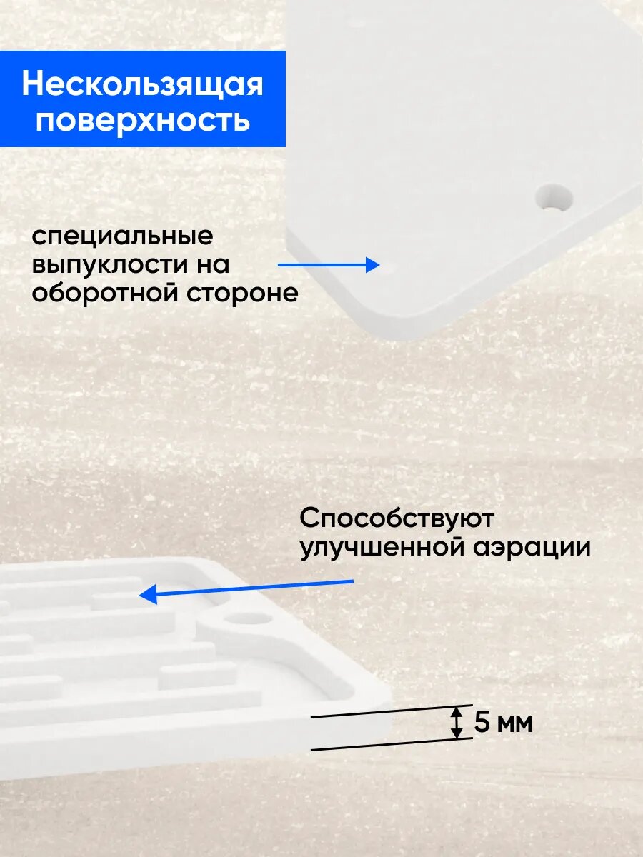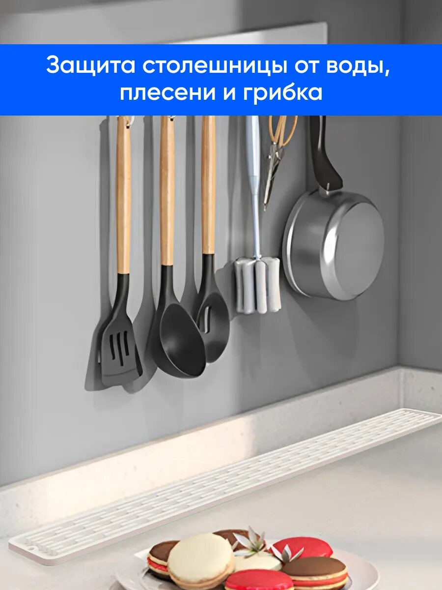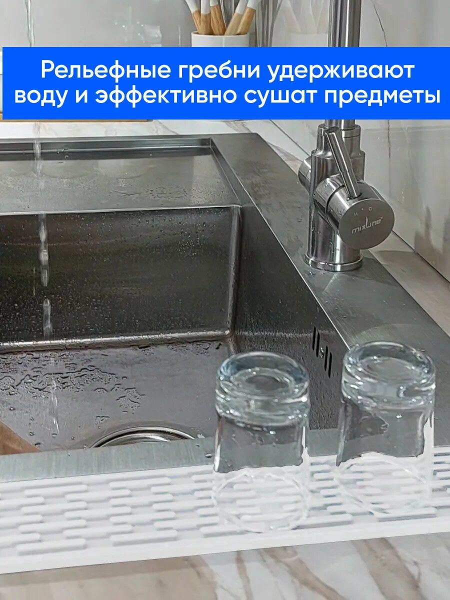 Коврик для раковины на кухне силиконовый, от брызг на столешницу, для сушки посуды, 55х8,8х0,5 см, белый