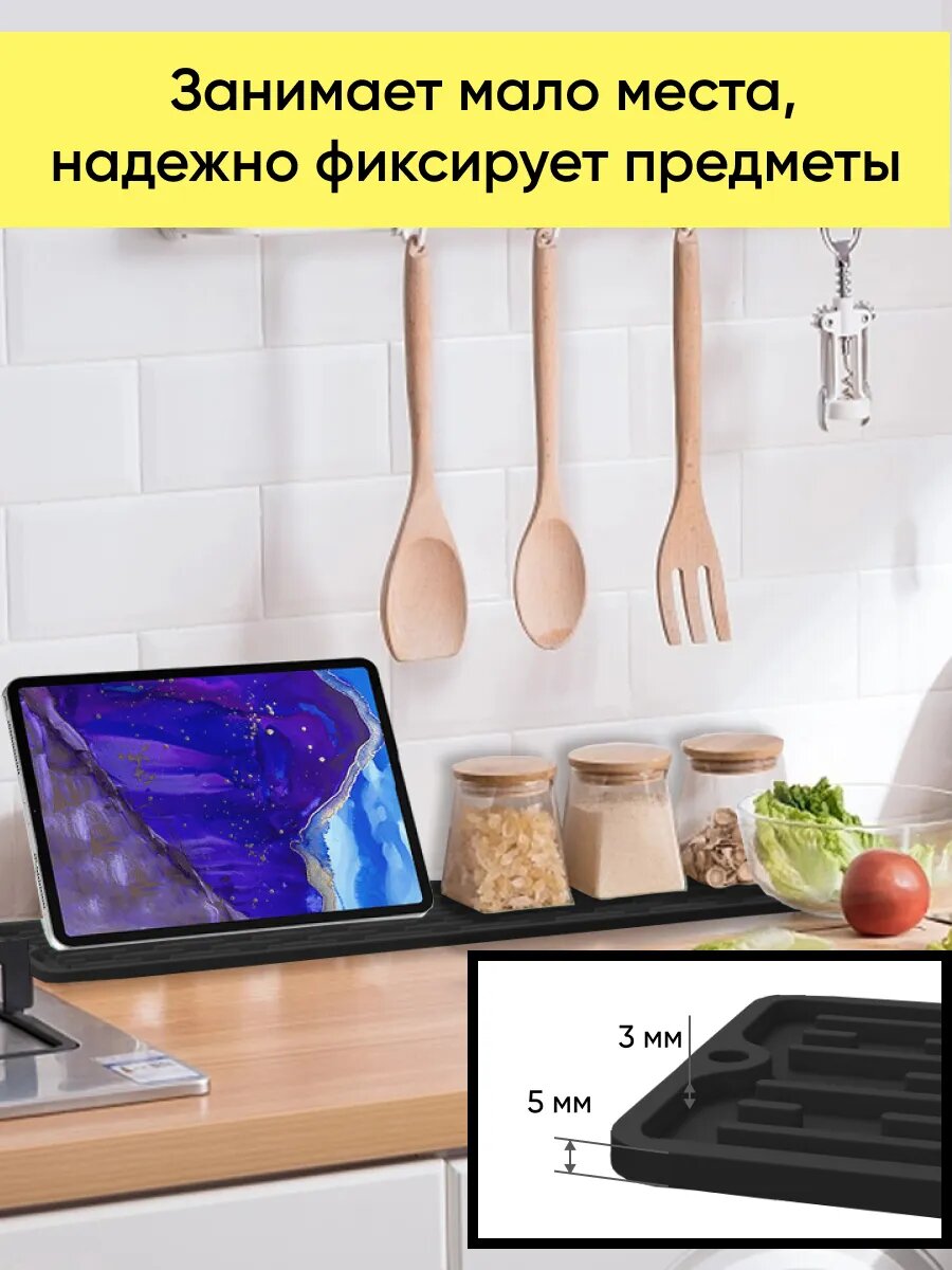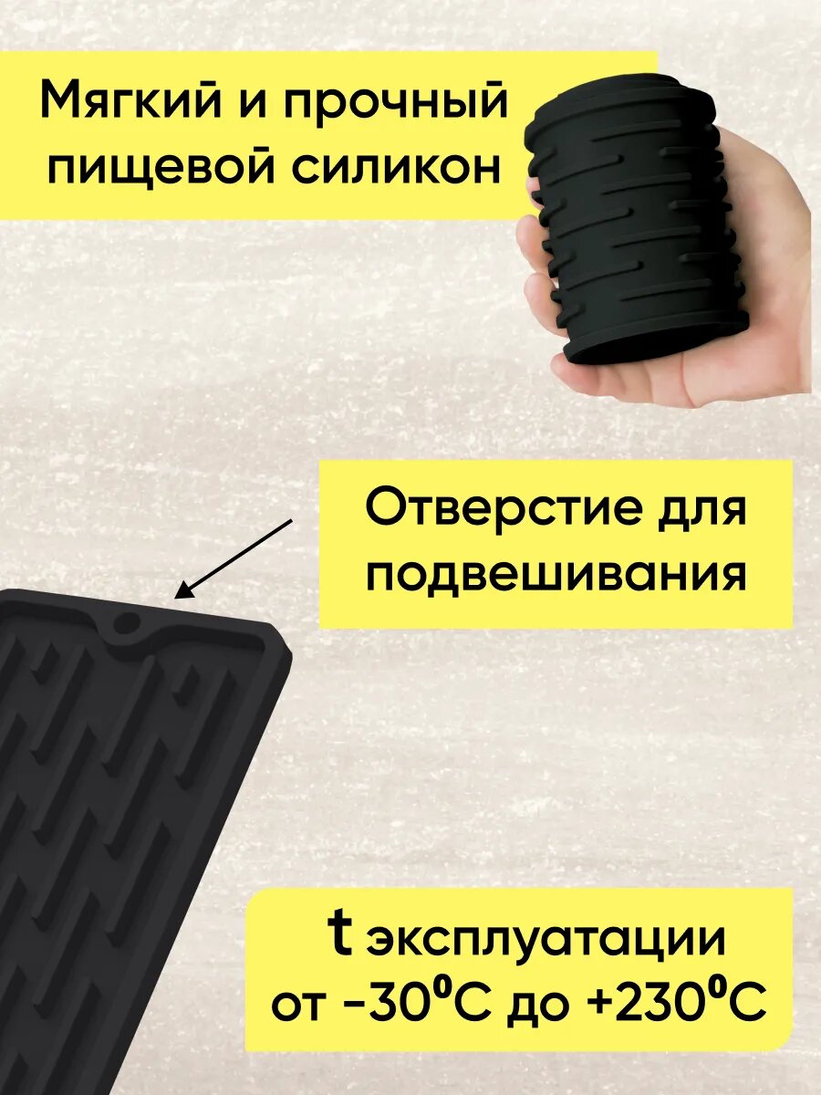 Коврик для сушки посуды силиконовый, под разделочные доски 35х8,8х0,5 см, черный