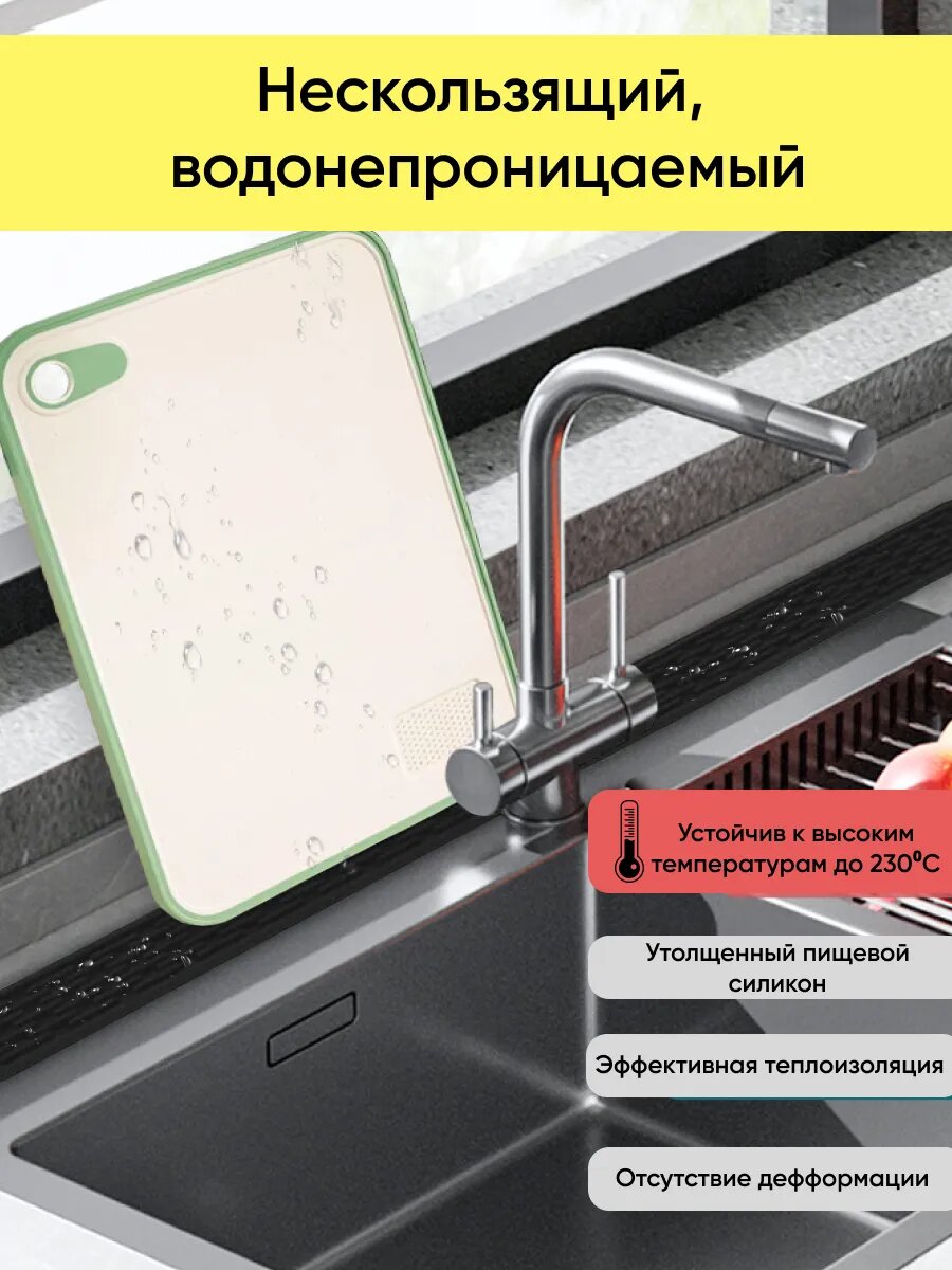 Купить Коврик для раковины силиконовый от брызг, для разделочных досок, для сушки посуды, 70х10х0,5 см черный