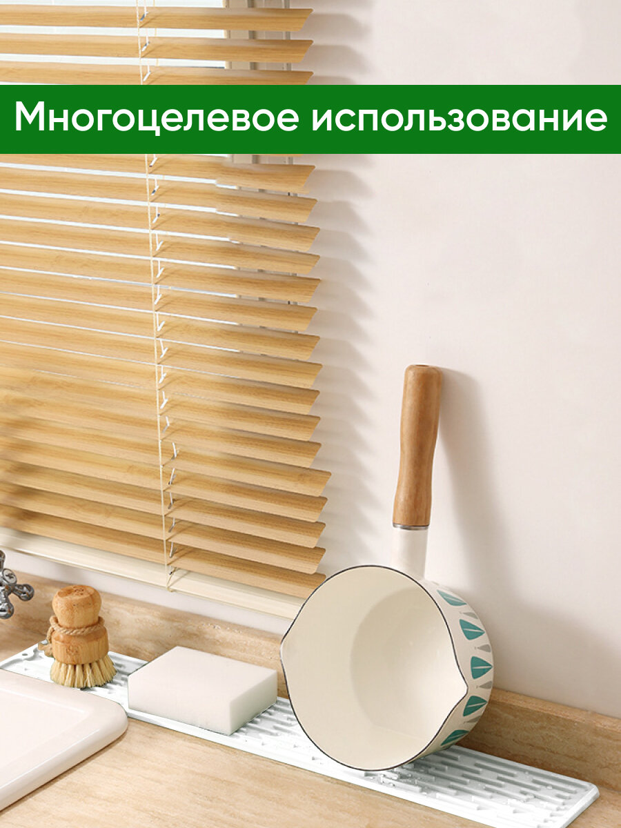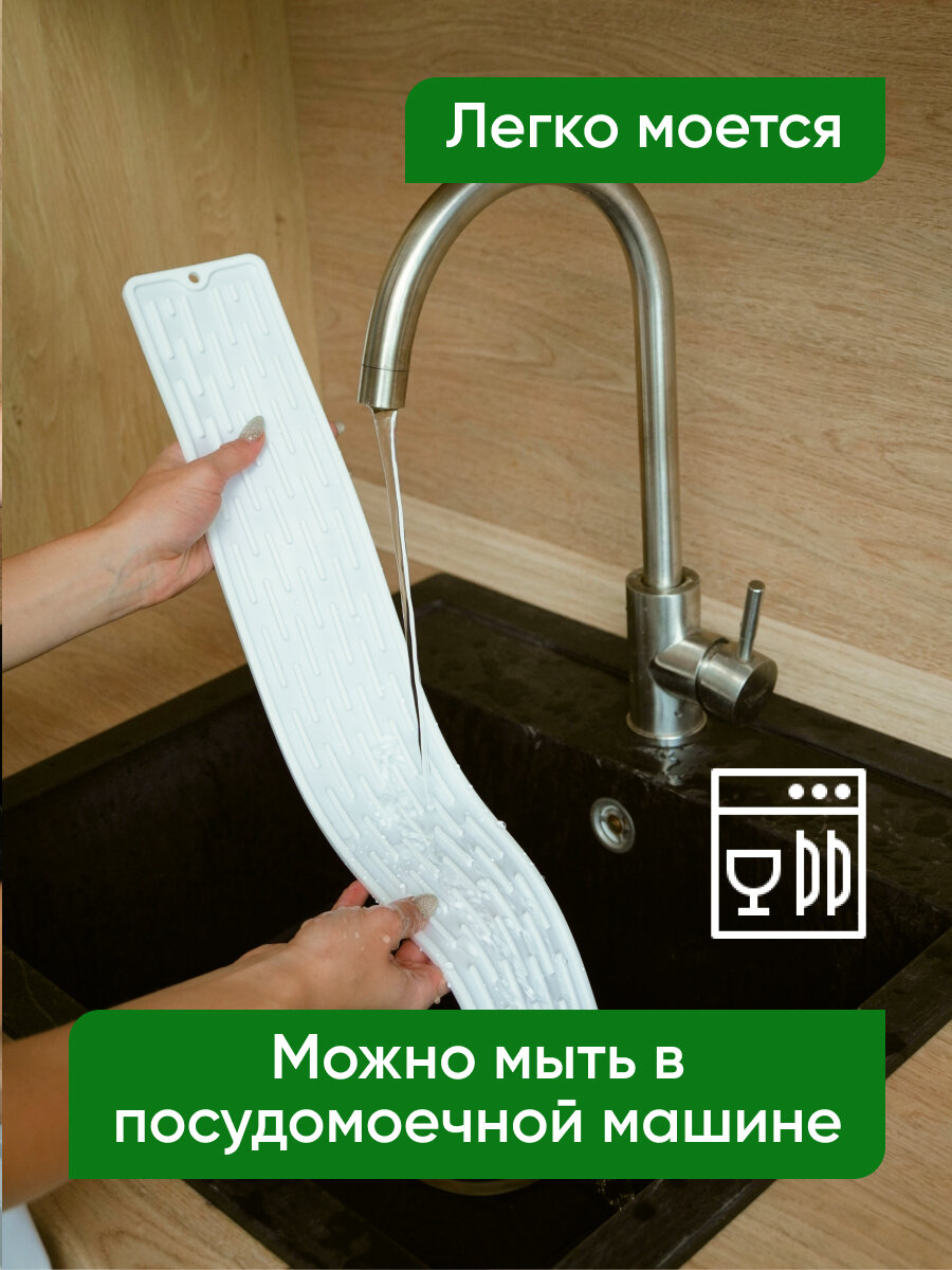 Купить Коврик для раковины на кухне силиконовый, от брызг на столешницу, для сушки посуды, 55х8,8х0,5 см, белый