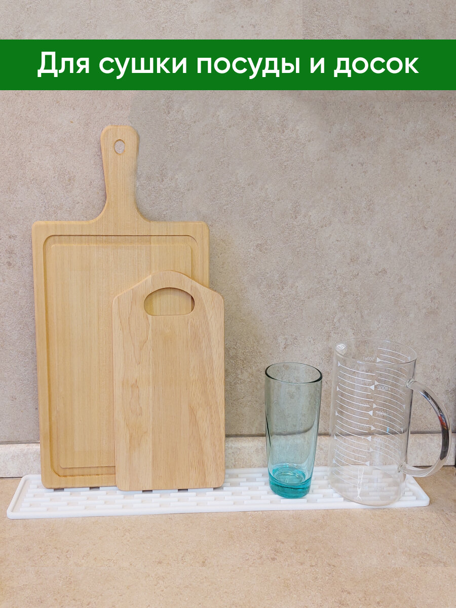 Коврик силиконовый для сушки посуды, разделочных досок 35х8,8х0,5 см, белый