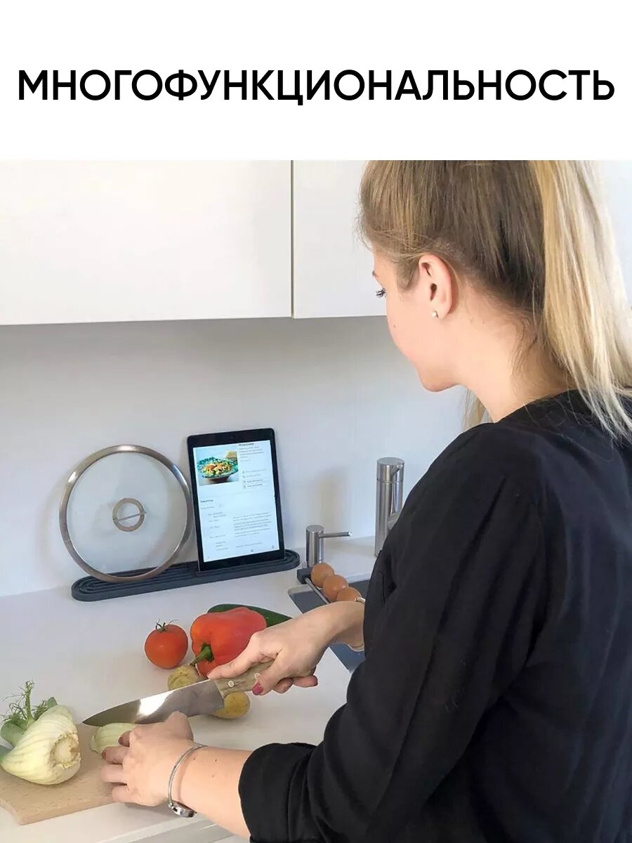 Коврик для сушки посуды силиконовый, под разделочные доски 35х8,8х0,5 см, серый