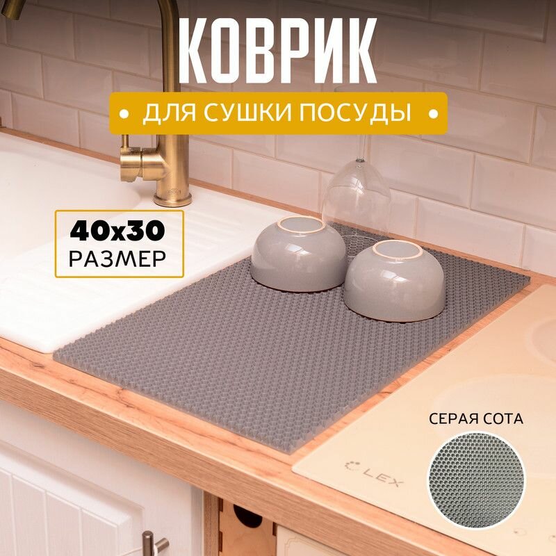 СохранитьКоврик для сушки посуды эва, EVA 40х30х1см серая сота, барный интересное: