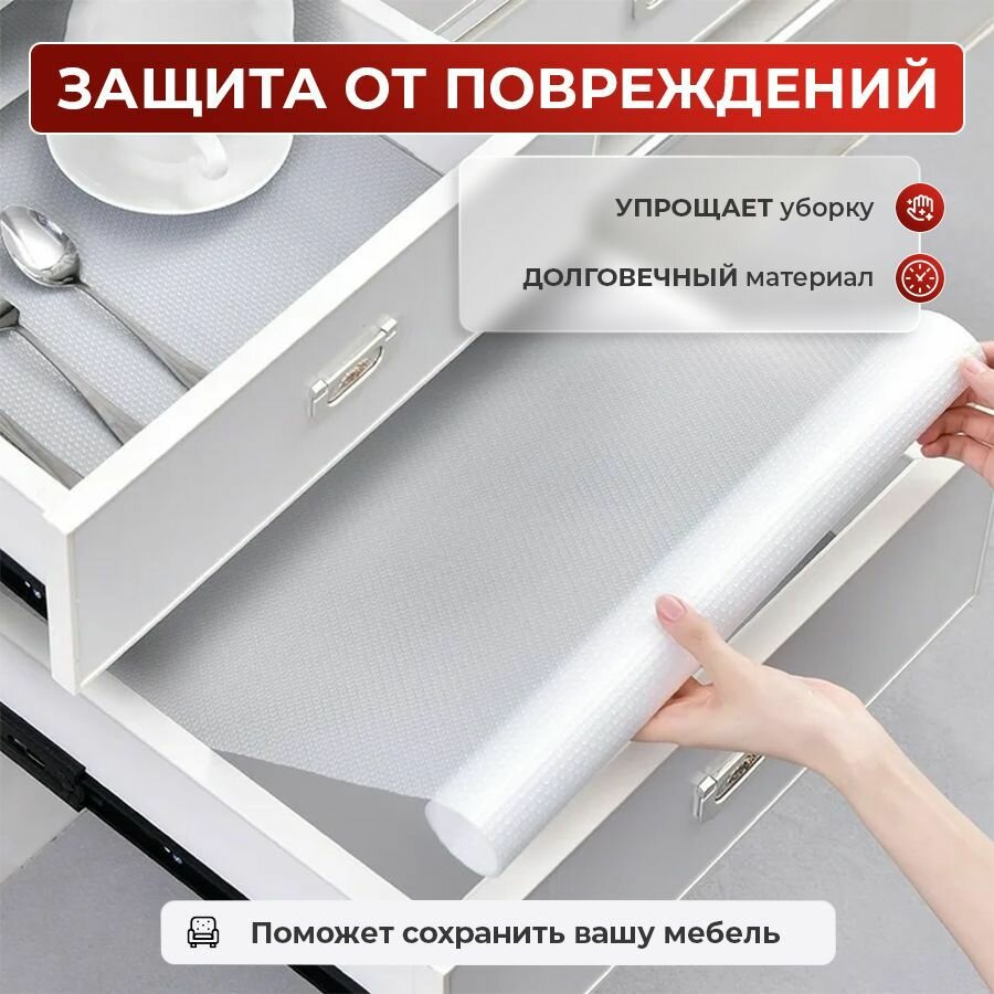 Коврик в холодильник, для кухонных полок, ящиков, шкафа, антискользящий, прозрачный, в рулоне 45х300 см