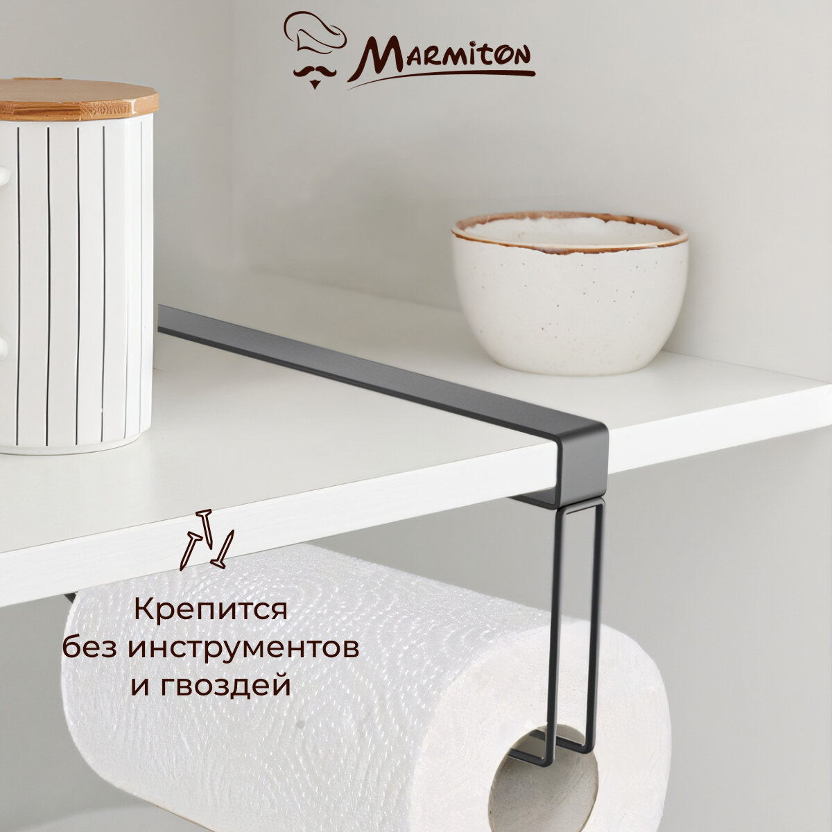 Держатель на полку для бумажных полотенец подвесной, металл, черный MARMITON интересное: