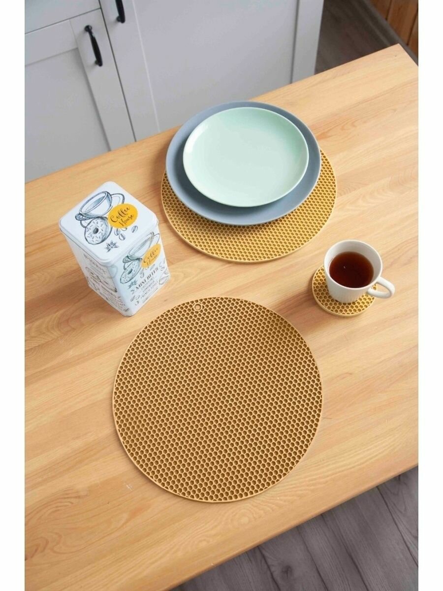 Подставка силиконовая под горячее Arrichi на стол кухню, желтая 30 см