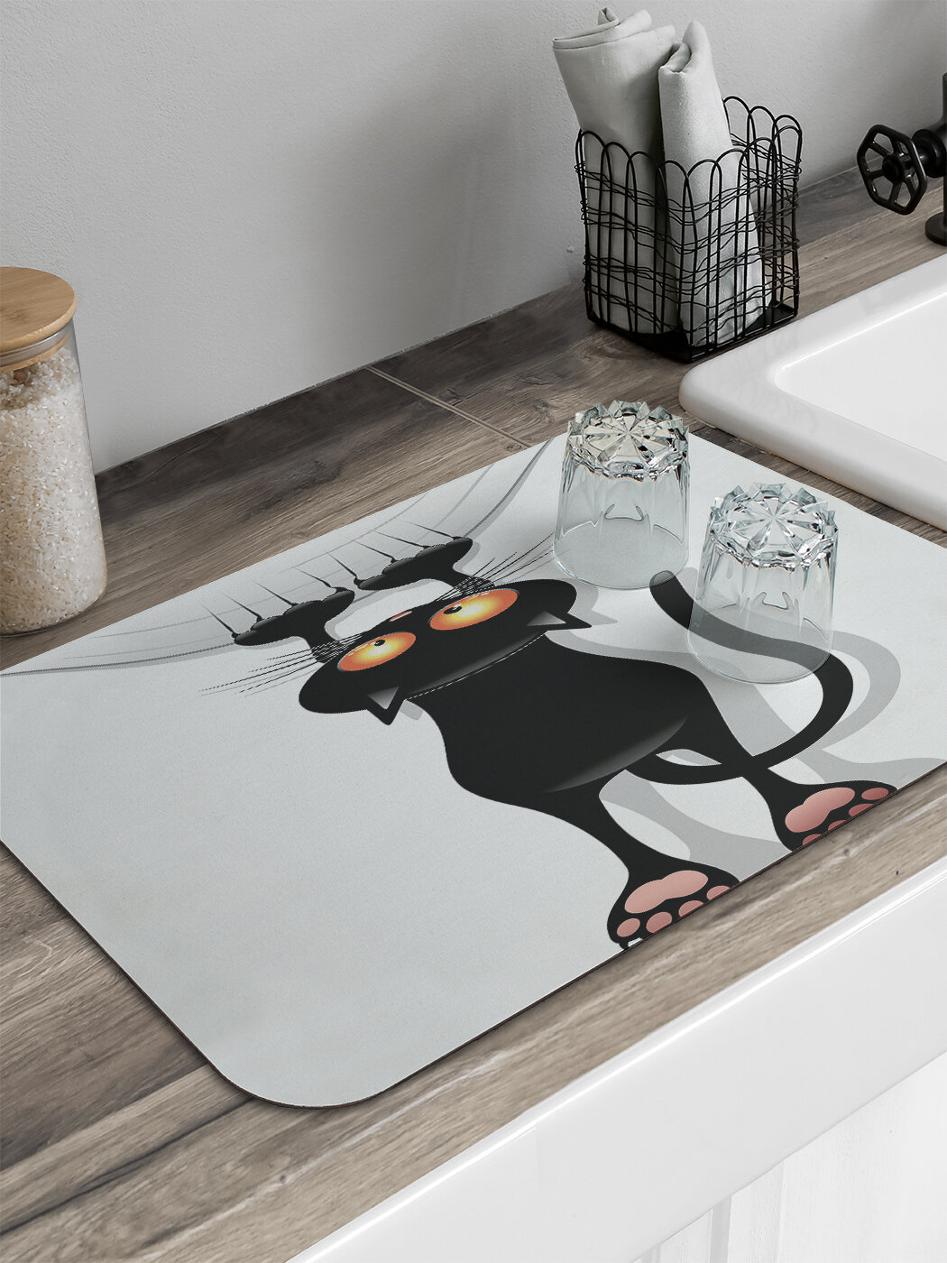 Коврик для сушки посуды прямоугольный "Кот-шкодник" интересное:
