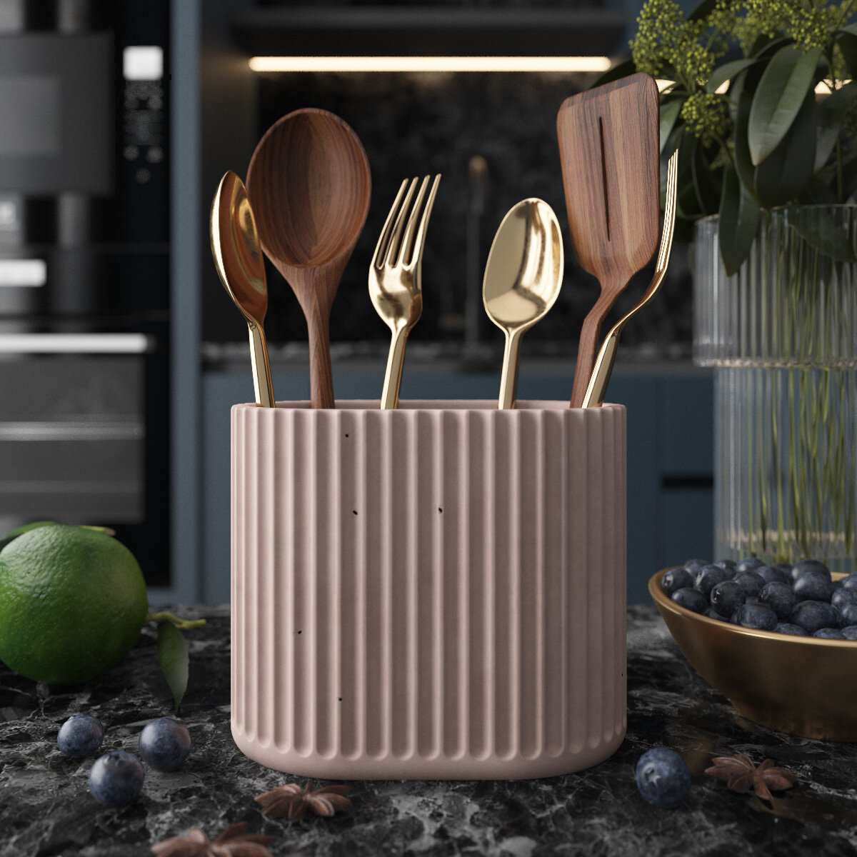 СохранитьКухонный стакан Chloe Duo, подставка для столовых приборов, 10х13х8.5 см, бетон, розовый матовый интересное:
