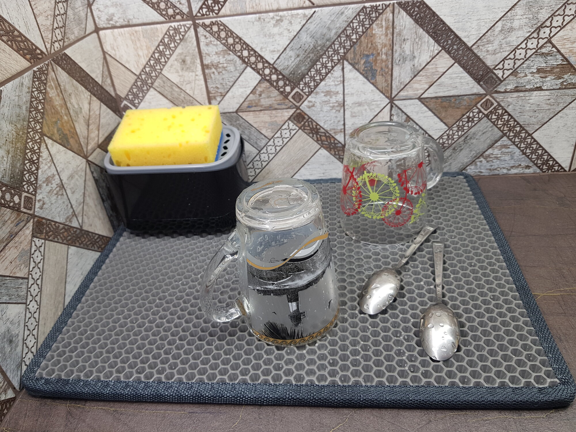 Коврик для сушки посуды, серый, универсальный, соты, 50х30 см интересное: