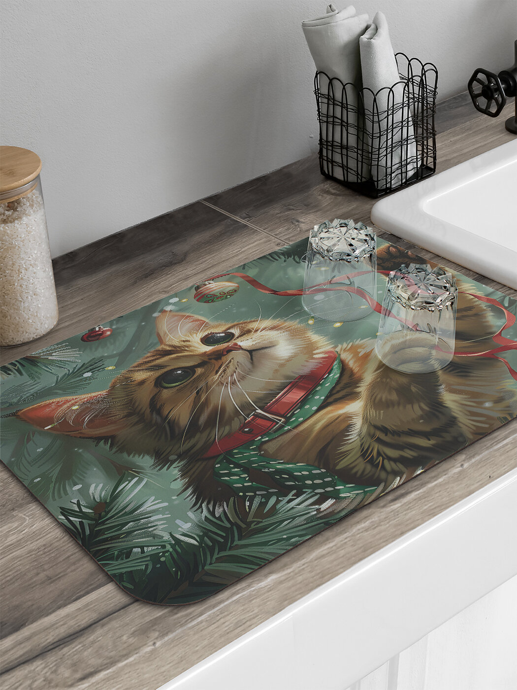 Купить Коврик для сушки посуды прямоугольный "Играющий котик" 58x38