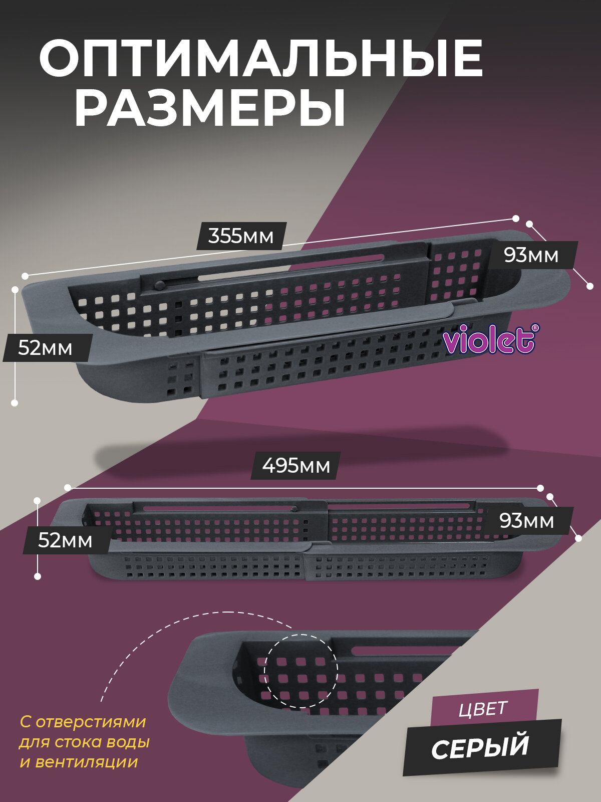 Купить Органайзер на раковину раздвижной Лофт узкий, набор 2шт, цвет серый / Мойка сушилка для фруктов, овощей, зелени