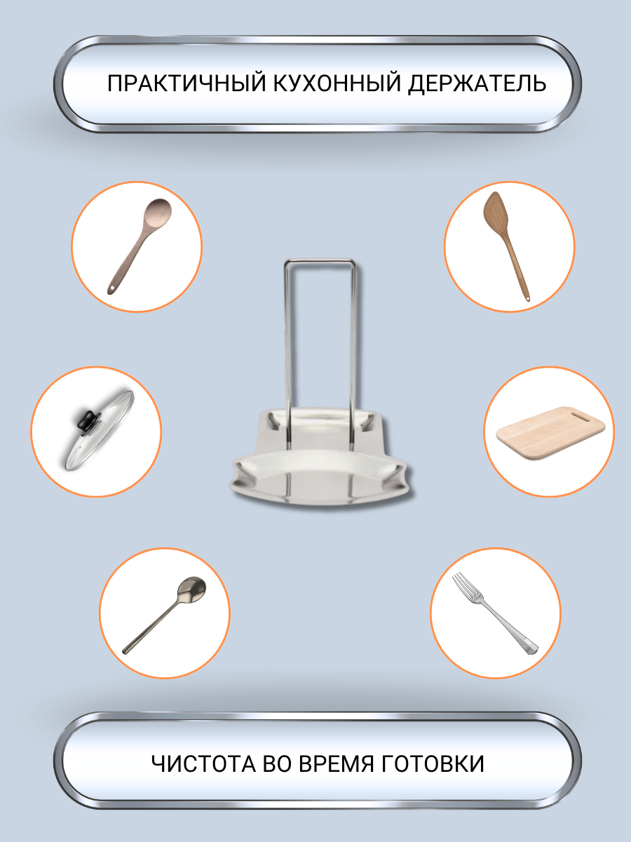 Подставка для ложек и крышек, нержавеющая сталь, высота 18 см, длина 19 см, ширина 16 см набор