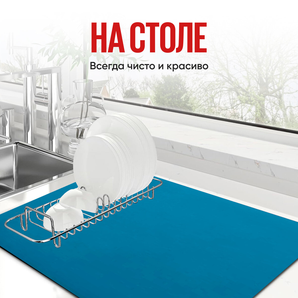 Купить Коврик для сушки посуды впитывающий (быстросохнущий нано коврик) 2 шт. 1 шт 30*40 + 1шт 40* 50 морская волна
