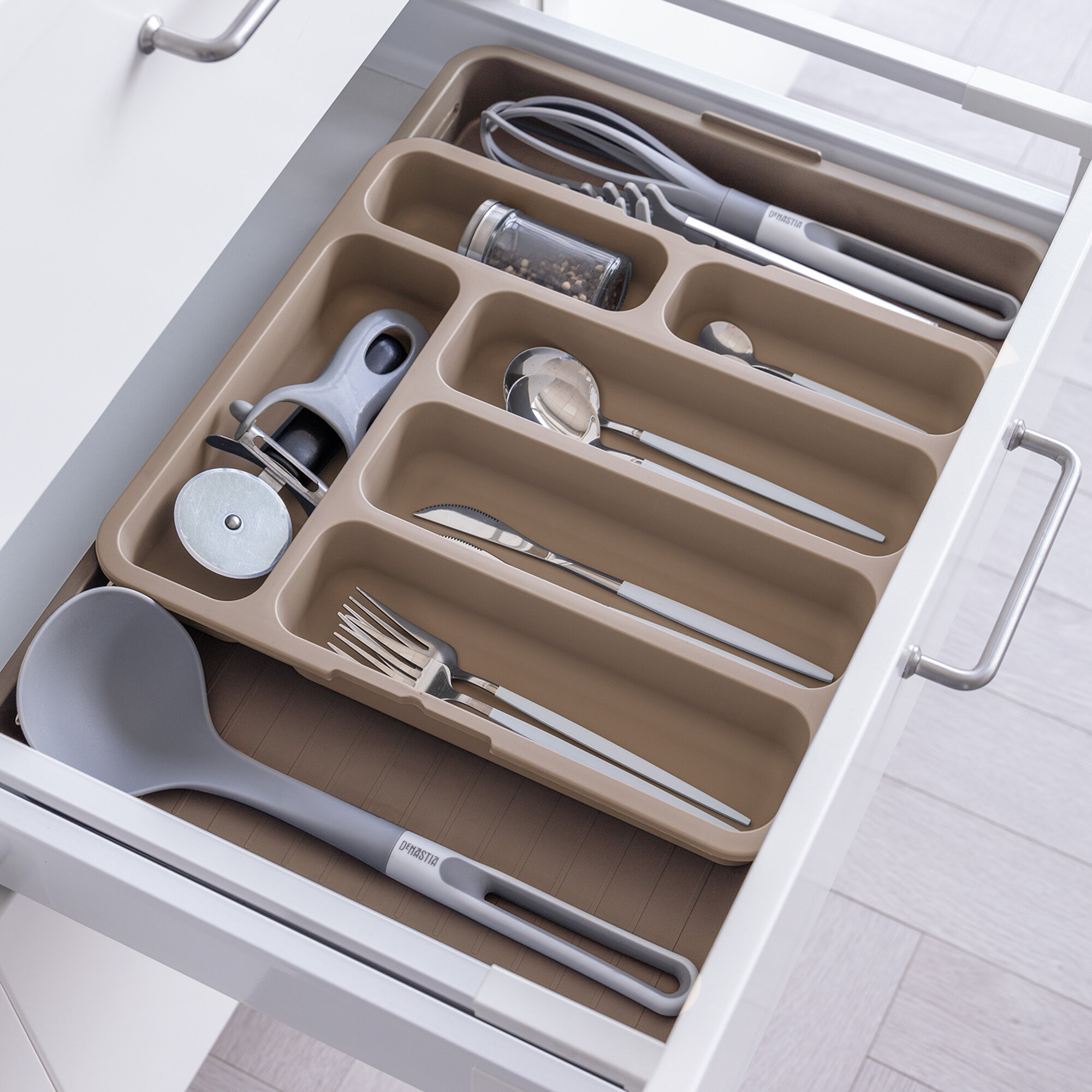 Органайзер (лоток) для столовых приборов DeNASTIA раздвижной, 31 x 35 x 5,5см, цвет бежевый, A000139 интересное: