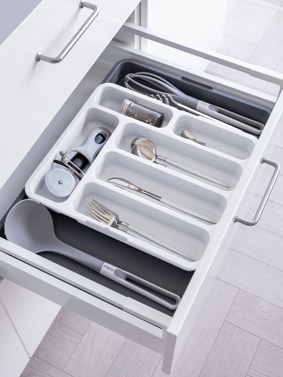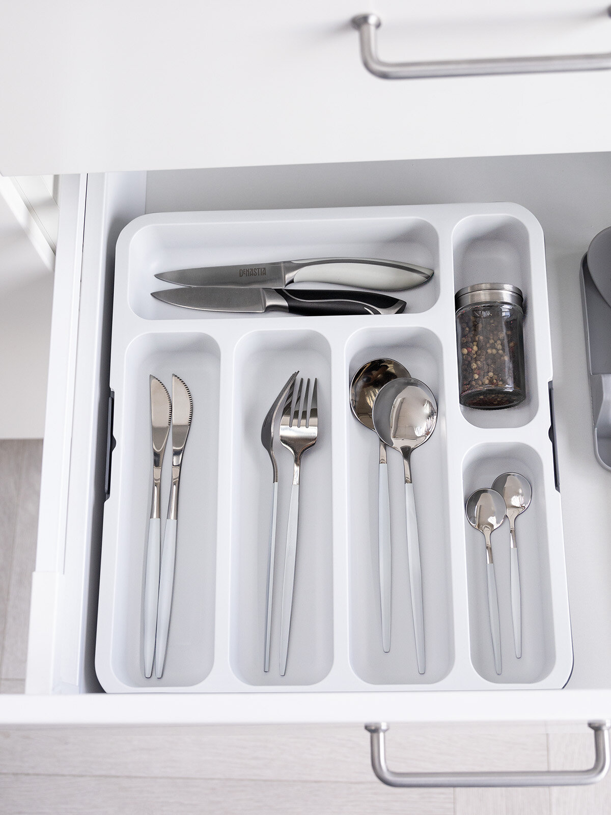 Купить Органайзер (лоток) для столовых приборов DeNASTIA раздвижной, 31 x 35 x 5,5см, цвет белый