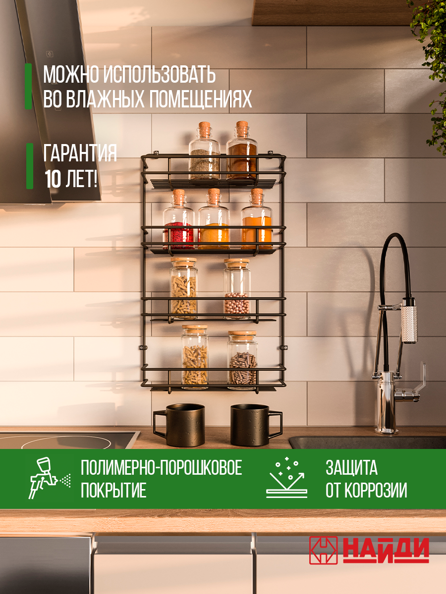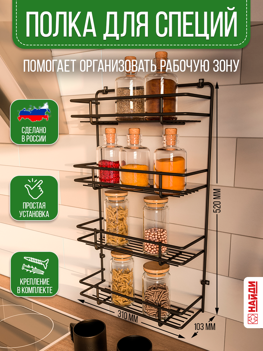 Полка для кухни найди настенная, для специй, для бокалов, подвесная 10*31*50 см. Черный муар интересное: