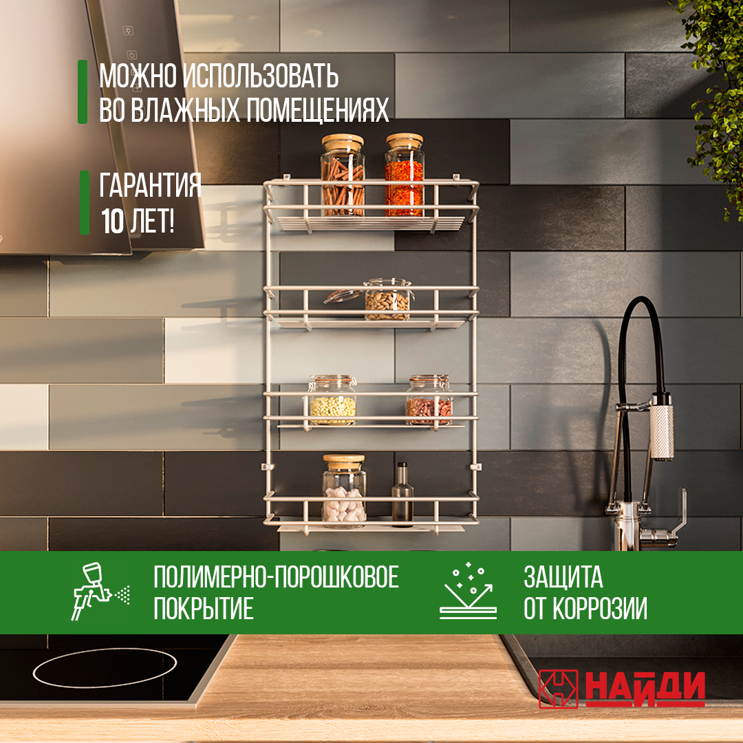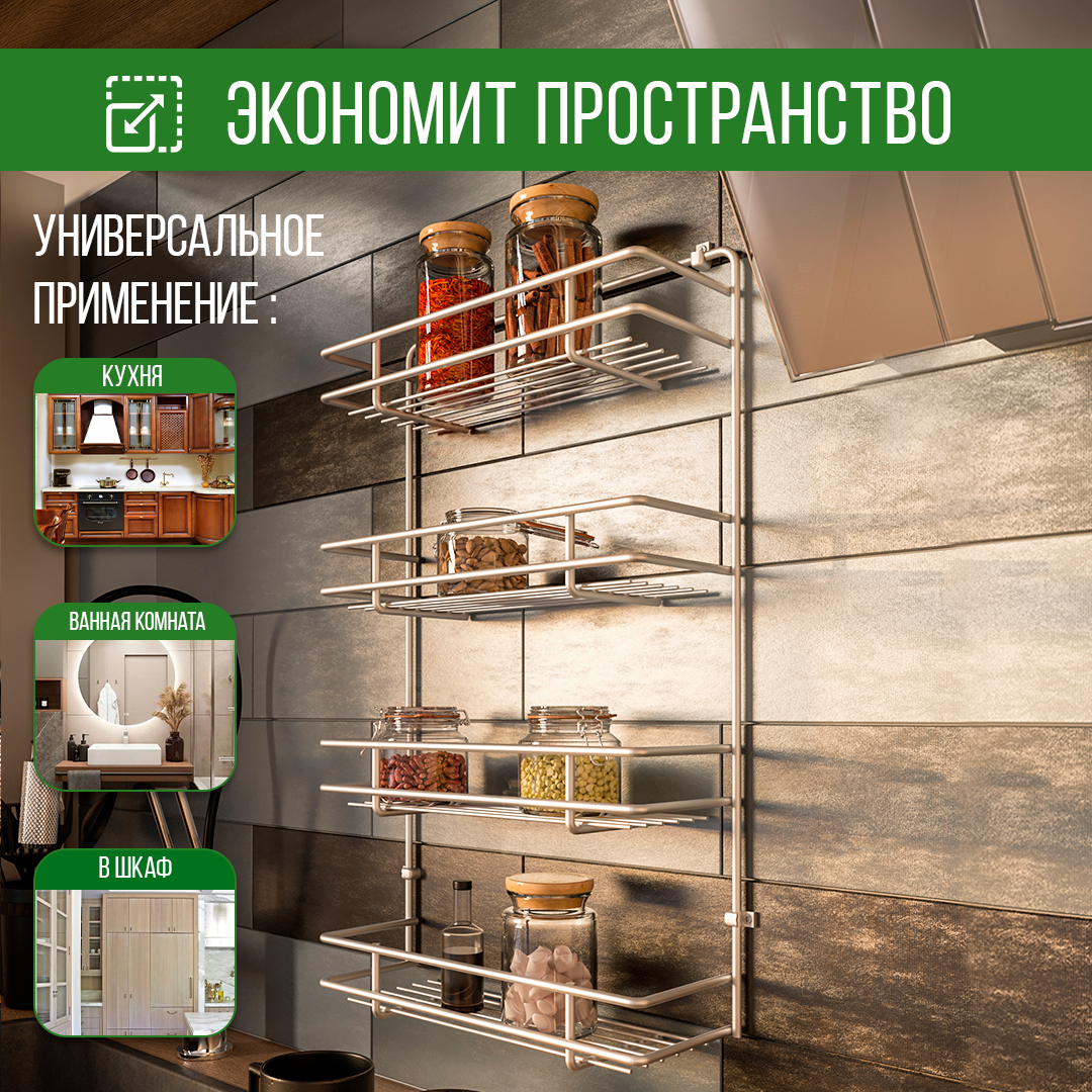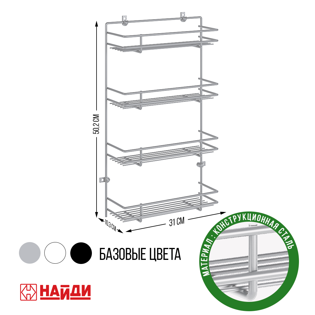 Полка для кухни 4 яруса настенная 10*31*50 см. Металлик серебристый интересное: