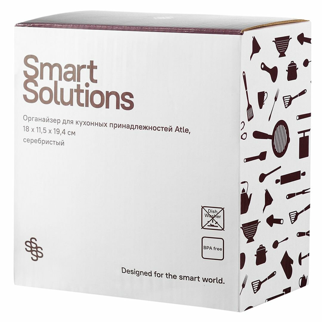 Купить Органайзер Smart Solutions для кухонных принадлежностей Atle, 18х11,5х19,5 см, серебристый (HF-ATL-ORG-KNF-ABS-CHR)
