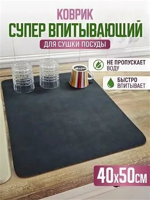 Коврик для сушки посуды Mega Sel впитывающий, темно-серый, 40 x 50 см интересное: