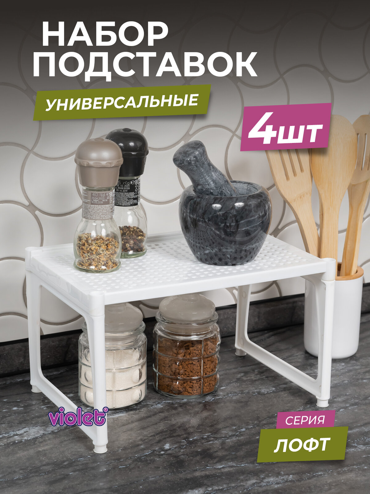 Купить Полка пластиковая настольная Лофт, набор 4шт, цвет белый / подставка органайзер на кухню