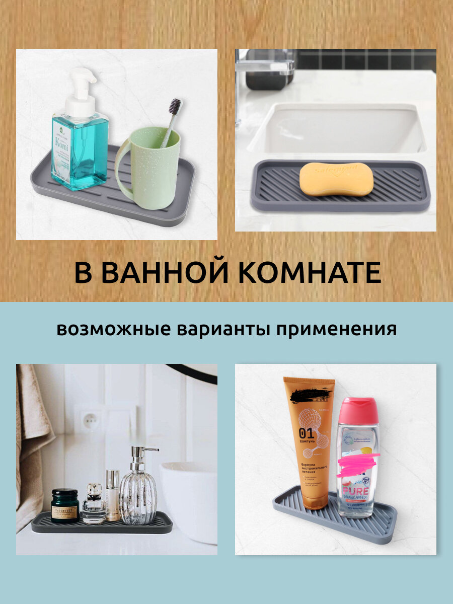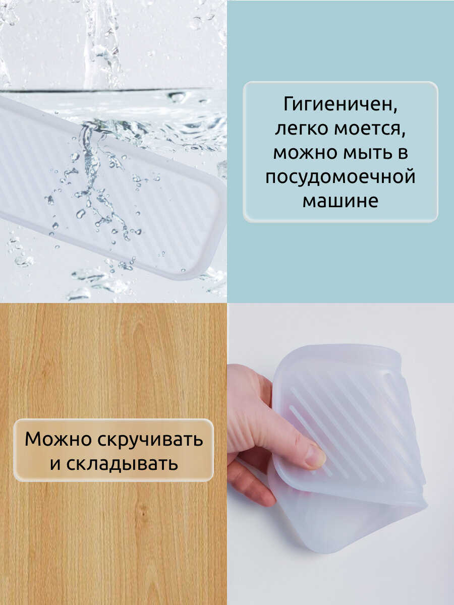 Подставка для губки силиконовый, для ложки, для кружки, органайзер для кухни 23х9х1,2 см, прозрачная интересное: