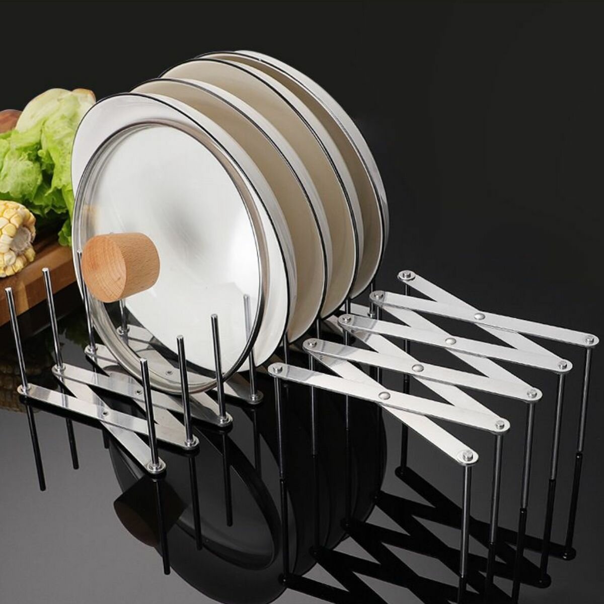 Подставка для крышек, тарелок, разделочных досок раздвижная, регулируемая интересное: