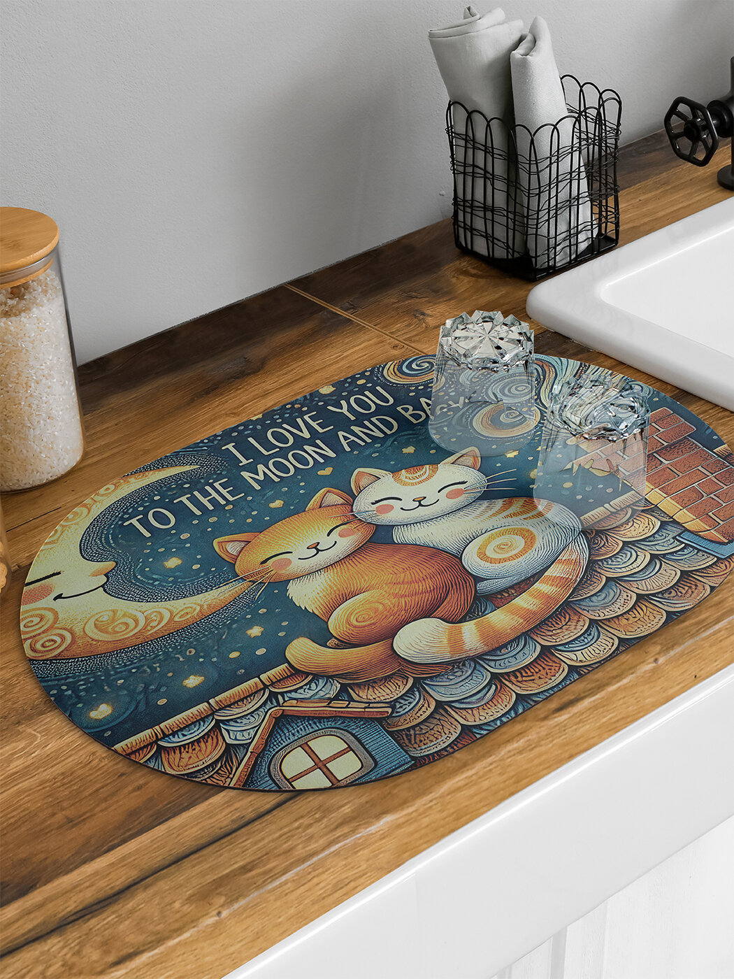 Коврик овальный для сушки посуды "Коты на крыше " 58x38, JoyArty интересное: