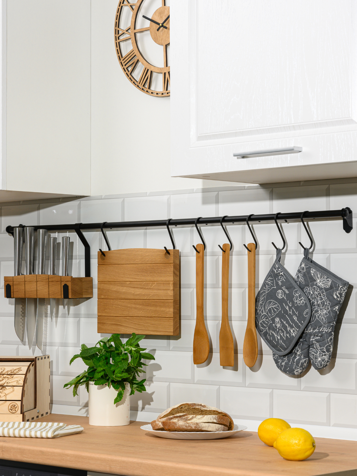 Рейлинг для кухни штанга "Country", металл, настенный, подвесной, чёрный, 60см