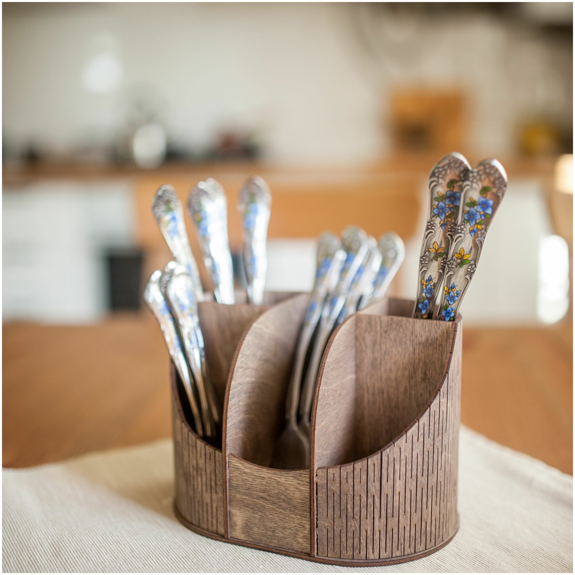 Деревянная подставка для столовых приборов Bezusoff с отделом для салфеток, 5 отделений, размер 13 см на 18 см интересное: