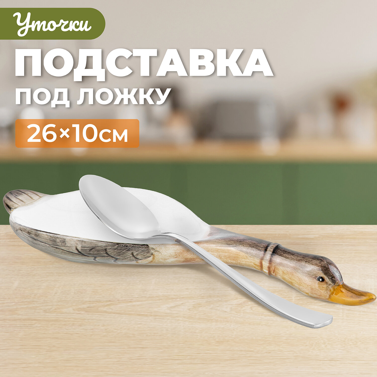Подставка для ложки Elan Gallery "Уточка", керамика, 26 х 10 х 2,5 см интересное: