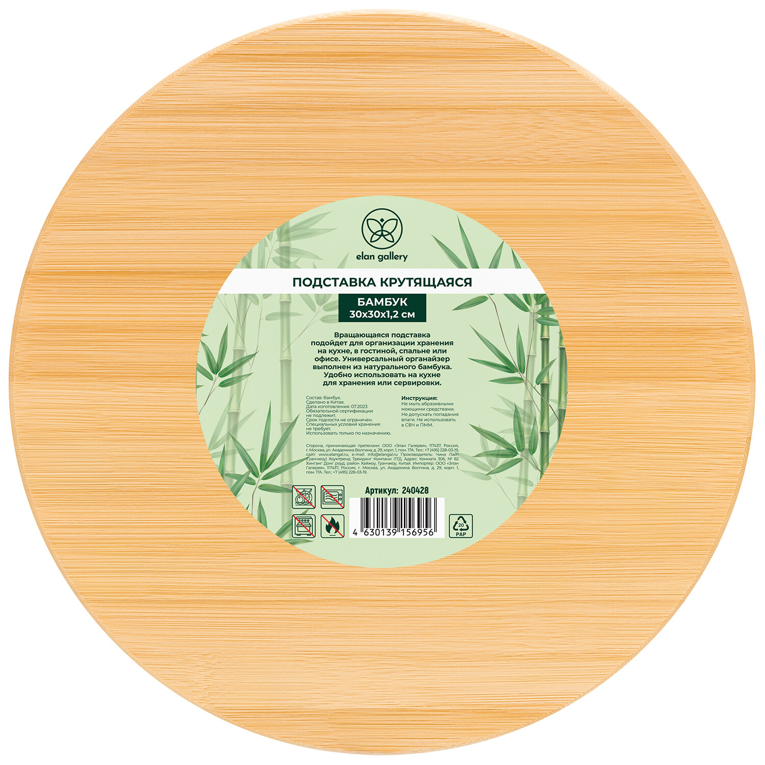 Купить Подставка бамбуковая крутящаяся / органайзер кухонный 30х30х1,2 см Elan Gallery