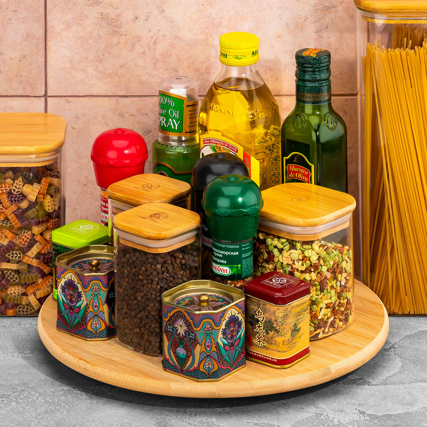 Подставка бамбуковая крутящаяся / органайзер кухонный 30х30х1,2 см Elan Gallery интересное: