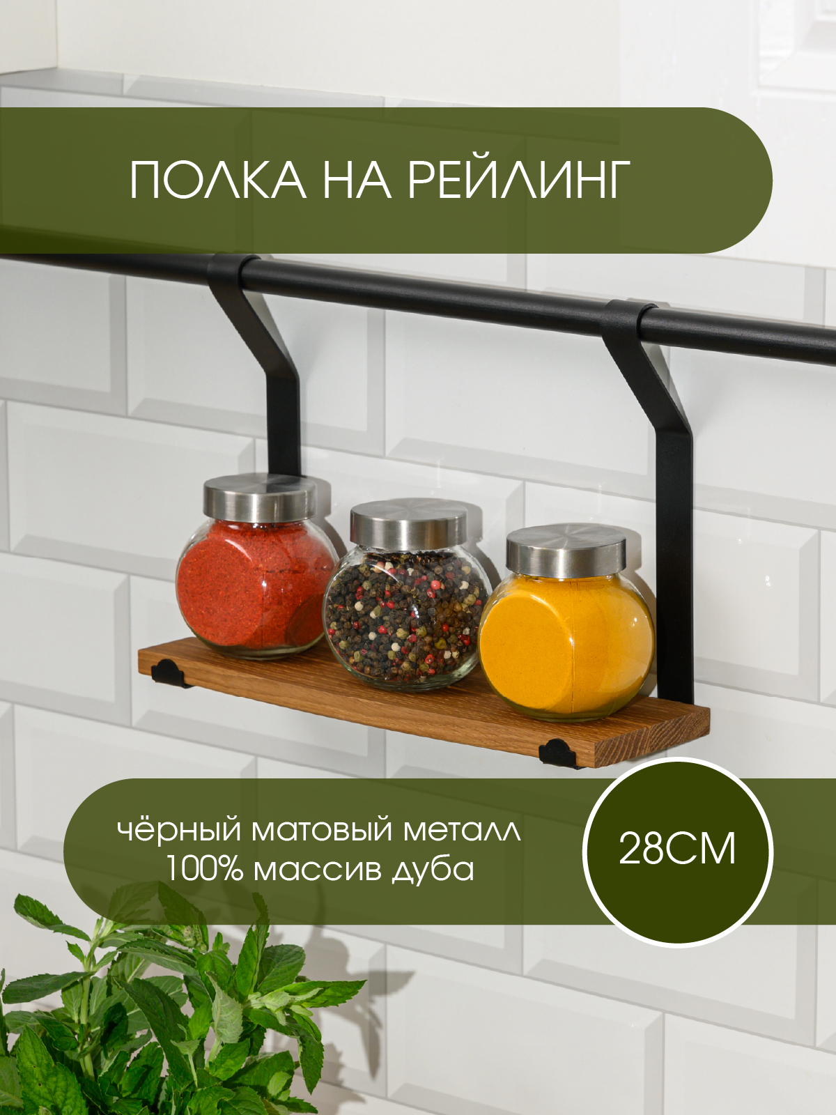 Полка для рейлинга L Фабрика Country, деревянная, для специй, 28 см x 9 см, чёрная интересное: