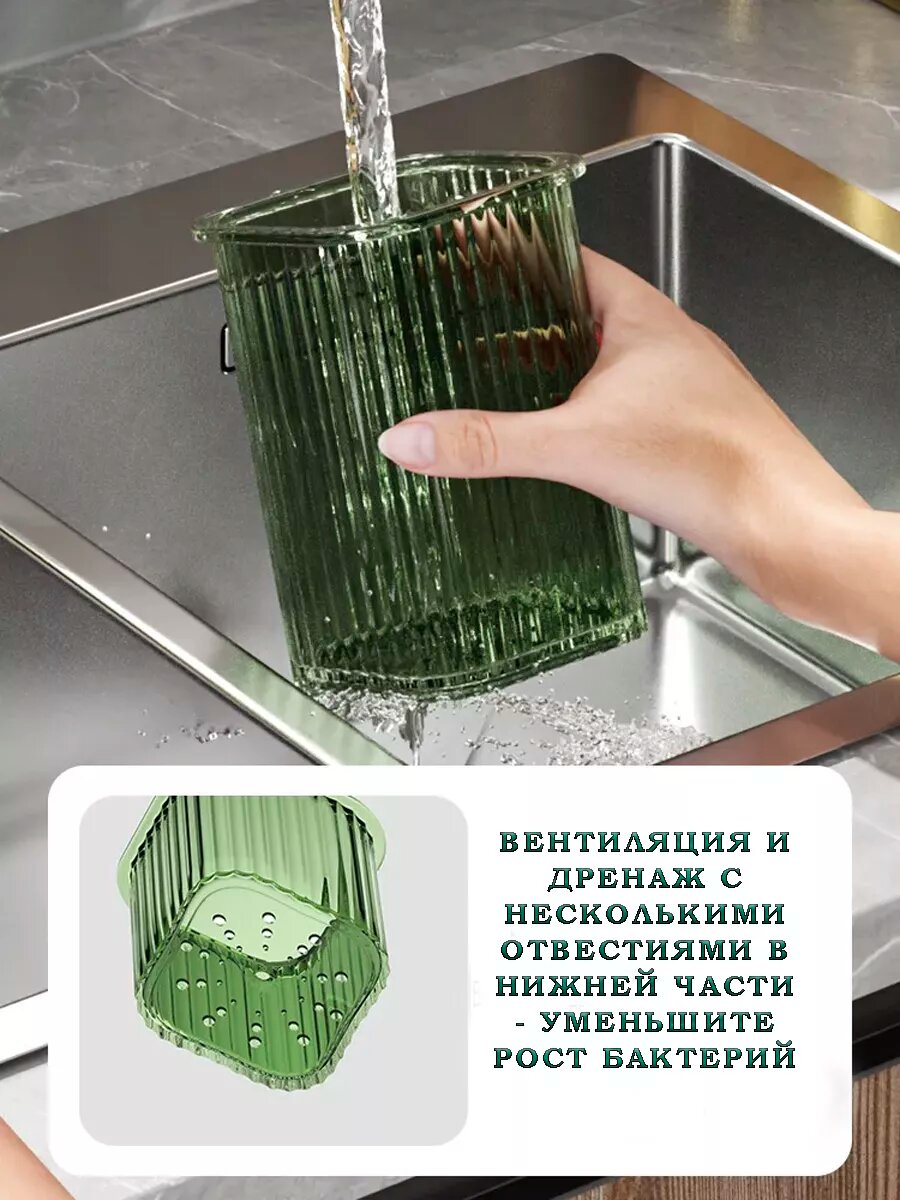 Подставка для столовых приборов Cosinesss, нержавеющая сталь и пищевой пластик, цвет зеленый/золотистый