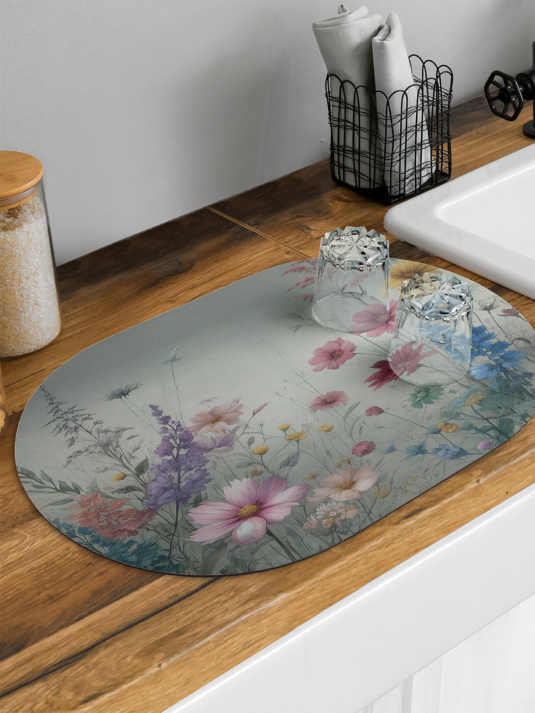 Купить Коврик овальный для сушки посуды "Цветы в тумане" овальный 58x38, JoyArty