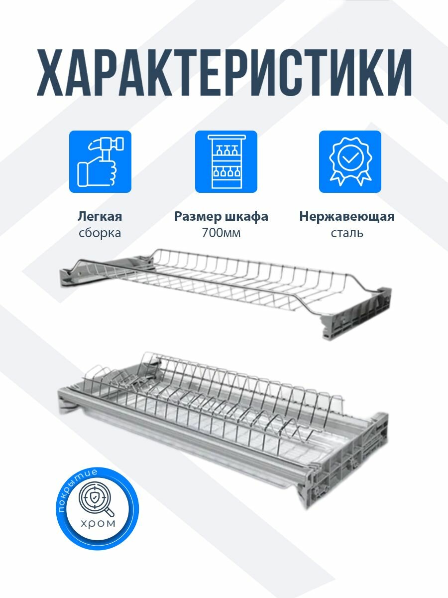 Сушка двухуровневая для посуды в кухонный ящик 70 см, отделка сталь 1 шт. интересное: