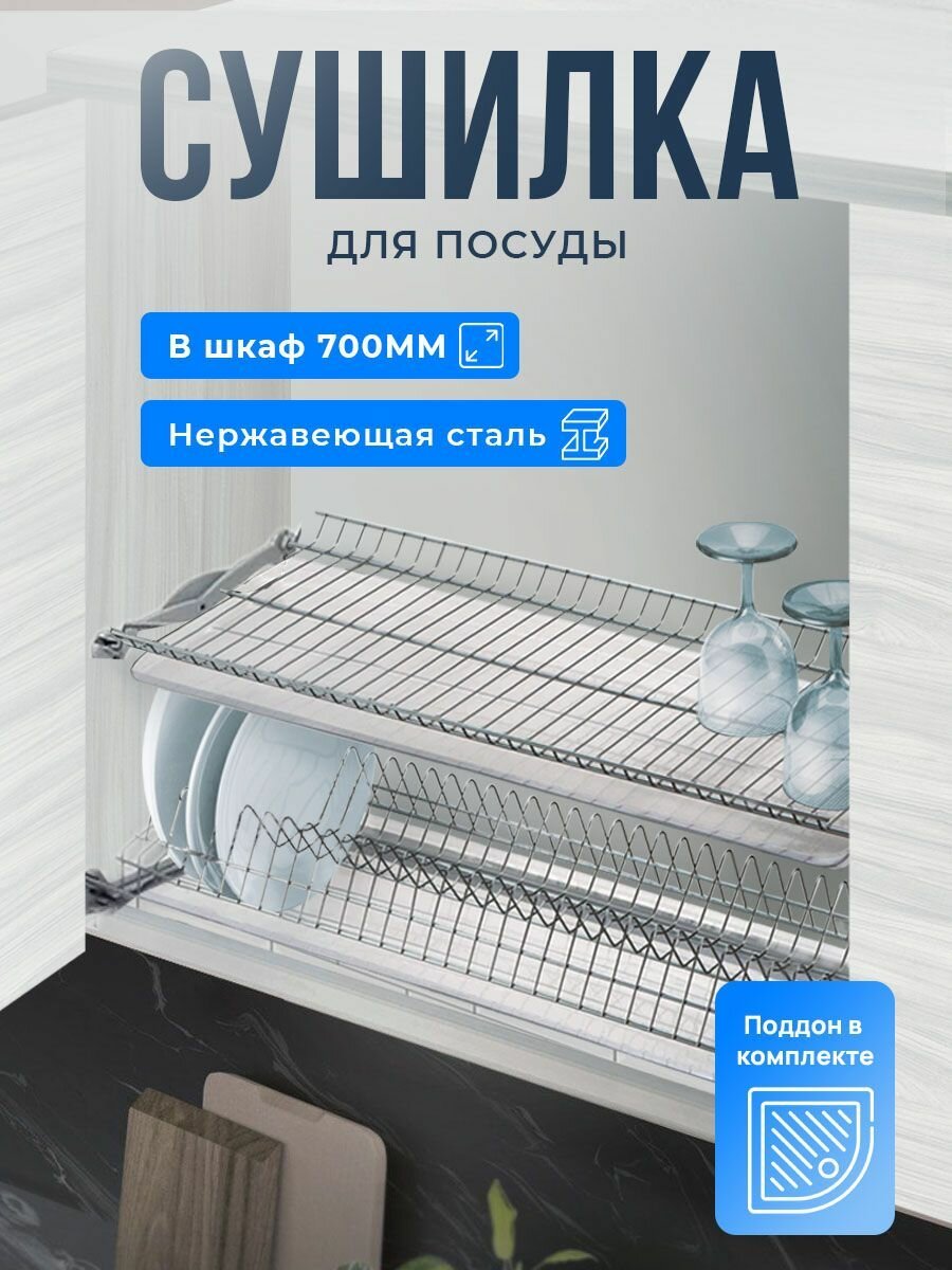 Сушка двухуровневая для посуды в кухонный ящик 70 см, отделка сталь 1 шт.